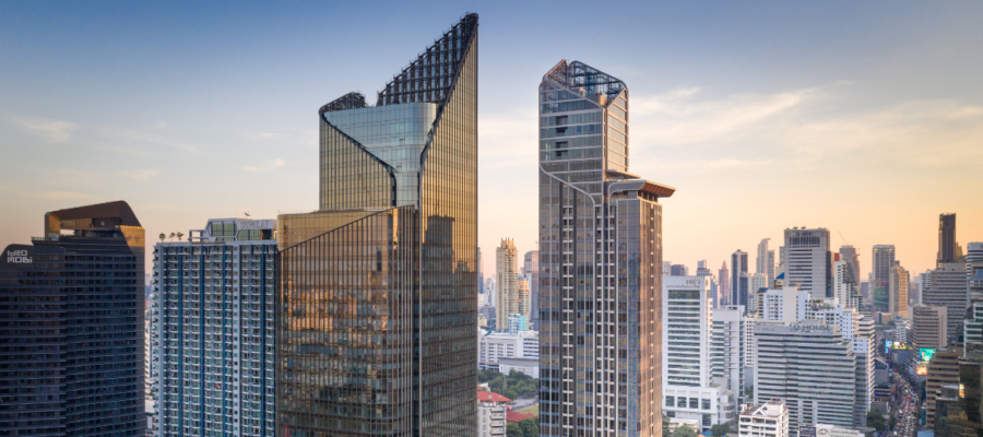 In a world where urbanization is constantly increasing while demography is progressing on almost all continents, one solution is obvious to all: we must build vertical! With more than 80 projects worldwide, Bouygues Bâtiment International is recognized for its expertise in the construction of high-rise towers. Up to 314m high for the Mahanakhon tower in Thailand! Structural calculations, loads spreading, seismic dampers, facade designs … so many parameters that our engineers integrate from the design stage to guarantee users maximum comfort and safety. And because a high-rise tower often has a strong architectural design, we put all our know-how to serve the aesthetic ambition of our projects: from The Sail towers (Singapore) to the Morpheus hotel (Macau) in passing through the Manhattan Loft Gardens (United Kingdom), we have taken up the complex challenge of constructing buildings that draw the skyline of their country and have won the most prestigious international architectural prizes.