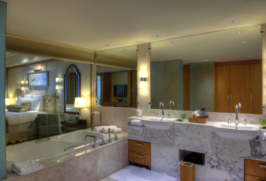 In the heart of the financial centre of Dubai, the 5-star Ritz-Carlton Hotel has 270 bedrooms, 71 suites, three restaurants and a shopping mall. It offers its customers the very best level of service. Constructed by Bouygues Bâtiment International, this vast complex consists of two 15-storey buildings with facades clad in pink granite and interior fittings that combine modern design with Arab influences.